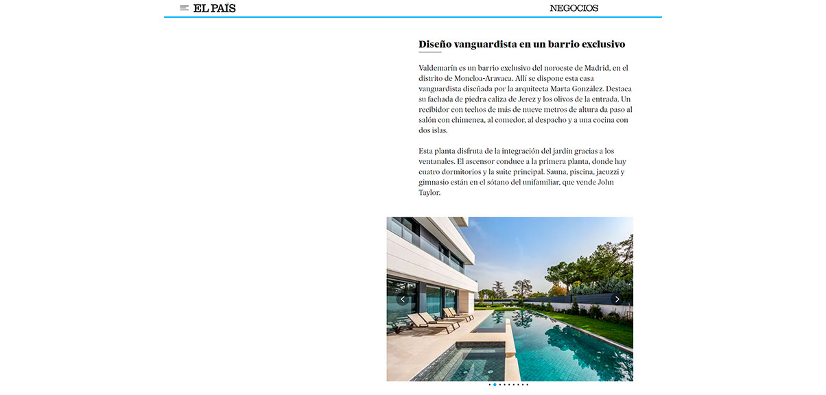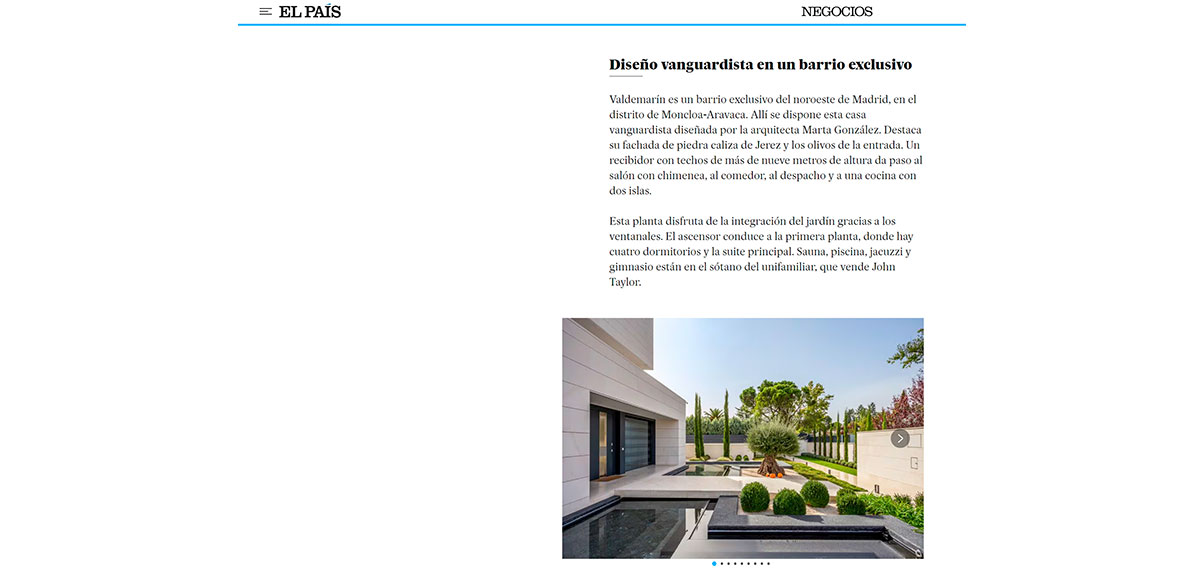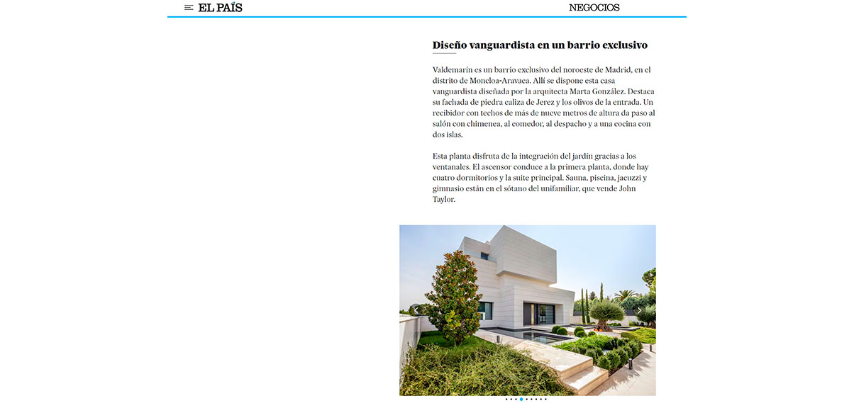 Publication of Robles house in the newspaper El País in March 2024
