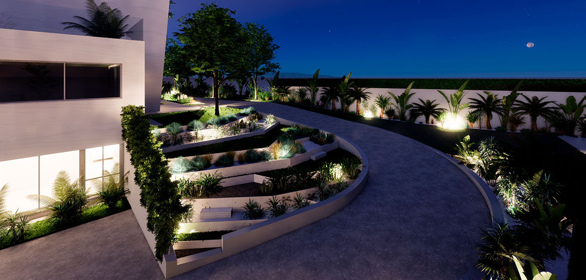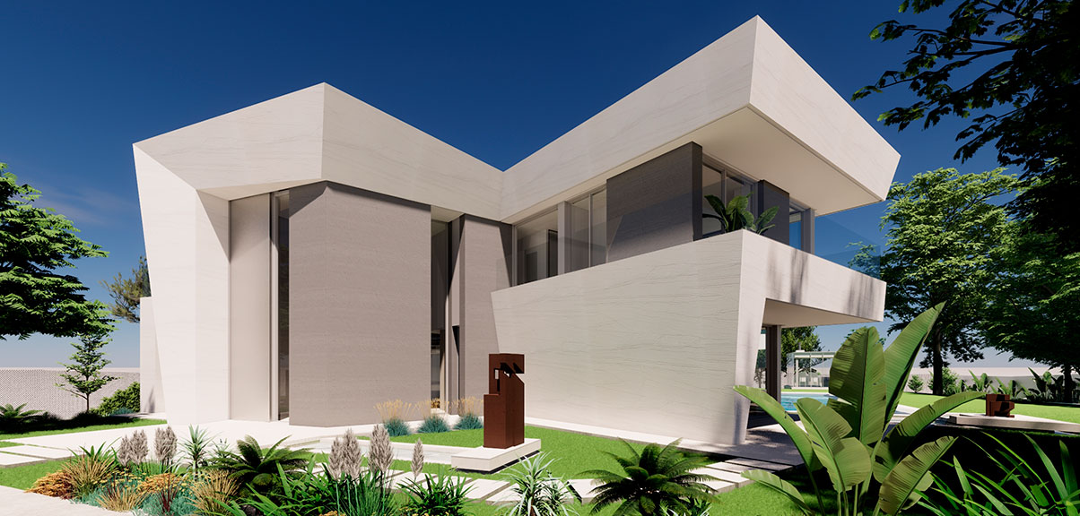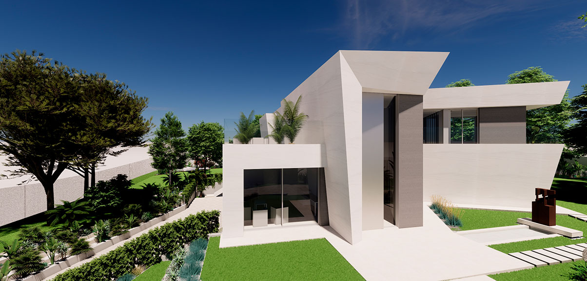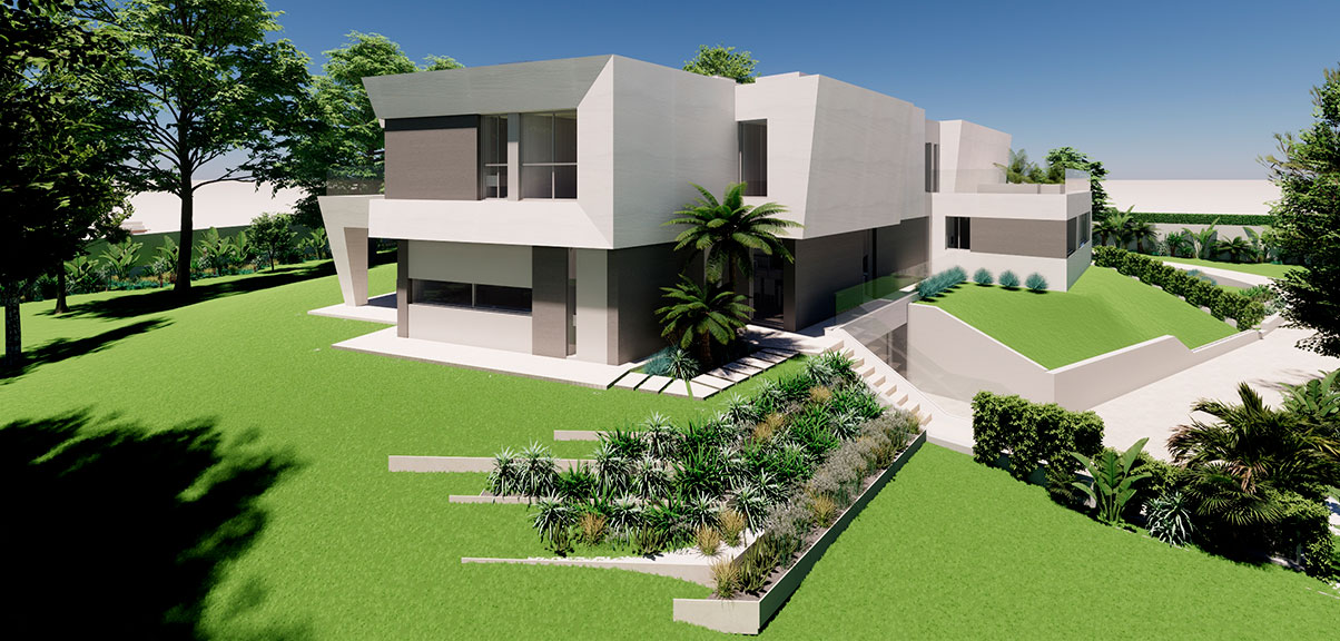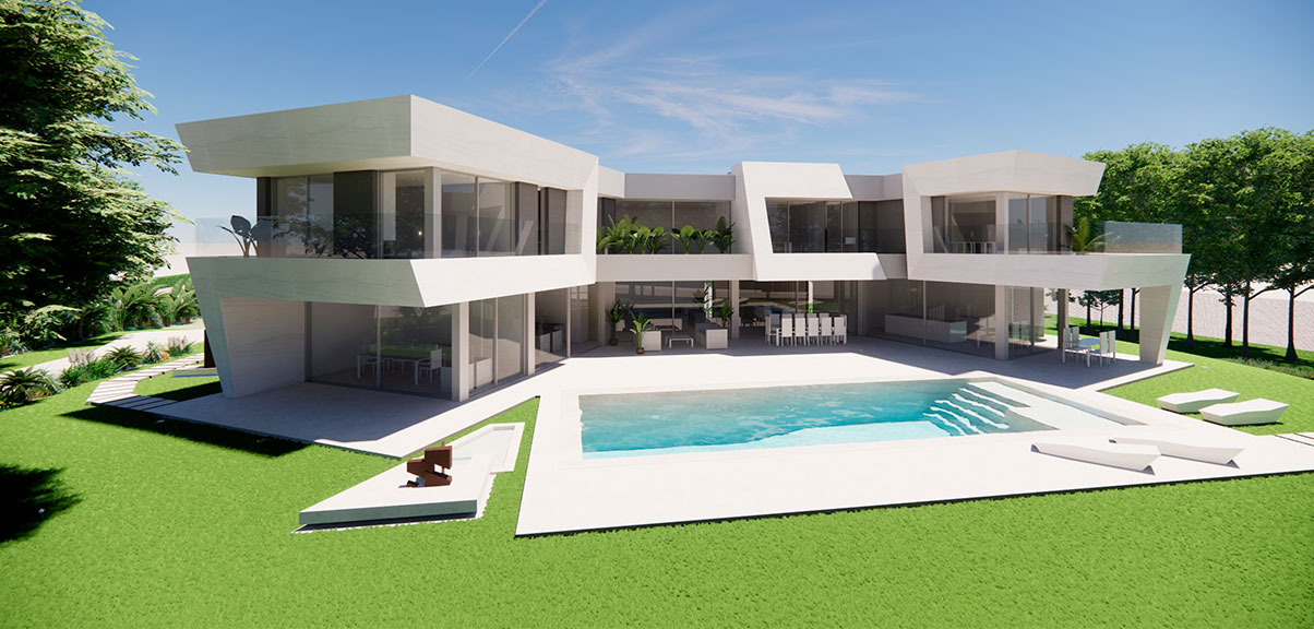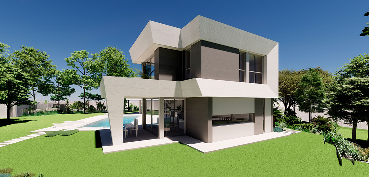 Vivienda unifamiliar de 800 m2 completamente abierta al jardín perimetral, generando una completa fusión del exterior con el interior de la vivienda. La vivienda se organiza en torno a la piscina exterior de manera que tanto desde el salón a doble altura como desde todas las estancias de la vivienda se puede disfrutar de las vistas de la piscina y jardín en todo momento. Las terrazas voladas de planta primera generan los distintos porches de planta baja que se encuentran todos ellos conectados alrededor del espacio central exterior.
