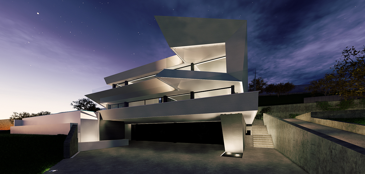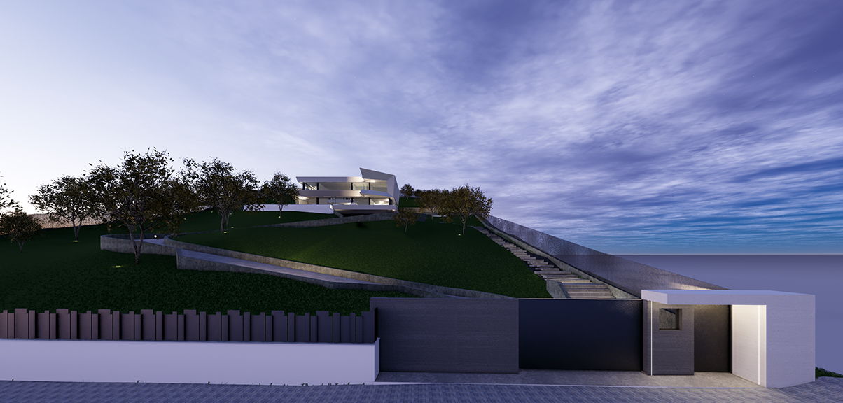 Vivienda unifamiliar con maravillosas vistas a la sierra de Madrid, ubicada en un solar de gran pendiente con acceso desde la parte inferior. El diseño se ha concebido bajo los parámetros de fusión de interior con el exterior, generando espacios con grandes superficies acristaladas a doble altura y conectadas con el espacio exterior. Se ha ubicado el dormitorio principal en un volumen volado de planta primera con vistas a la piscina desbordante y a las montañas de las sierra.