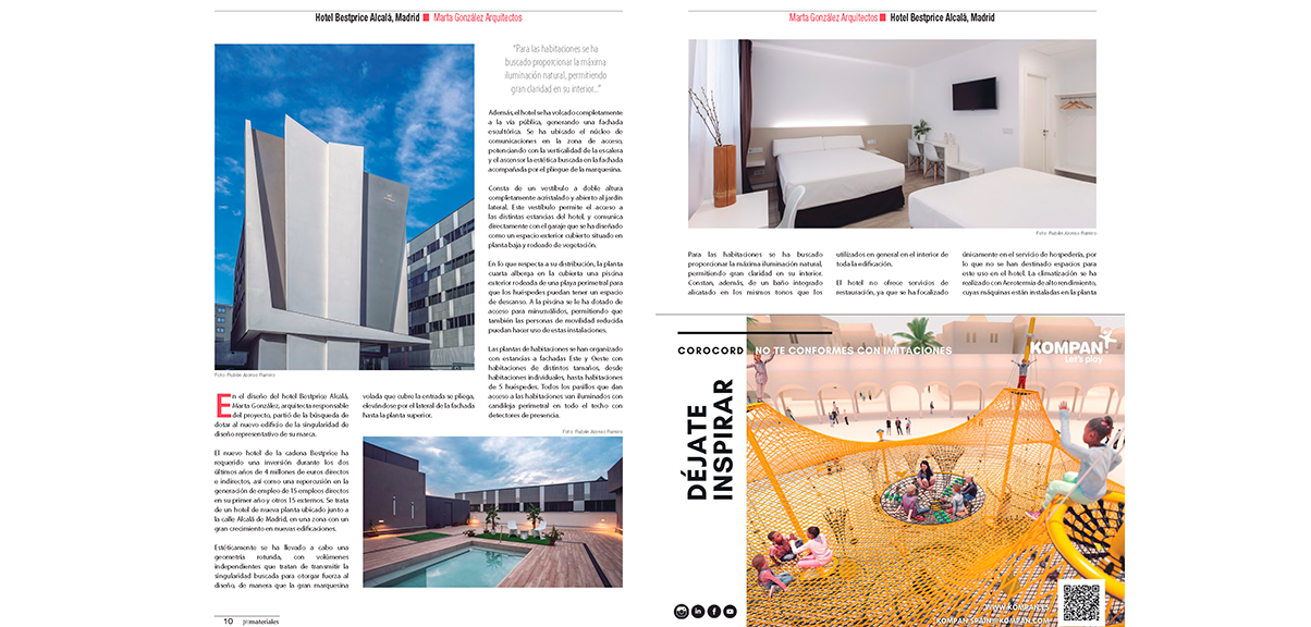 Publicación en la revista Promateriales del hotel Bestprice en la calle Alcalá de Madrid. https://promateriales.com/marta-gonzalez-arquitectos-hotel-bestprice-alcala-madrid/ 5-5-2021